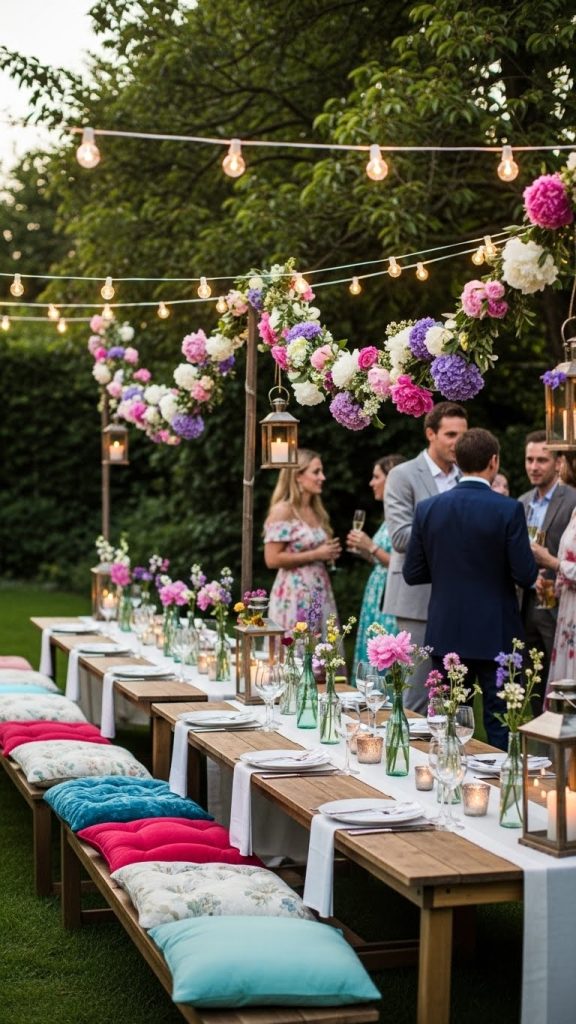 Take advantage of beautiful outdoor spaces by hosting a garden-themed bridal shower. Decorate with string lights, hanging lanterns, and floral garlands to enhance the natural beauty of the surroundings. Use rustic wooden tables, colorful cushions, and fresh blooms to create a cozy, relaxed vibe. Garden parties work well for spring and summer celebrations and offer plenty of opportunities for memorable outdoor photos.