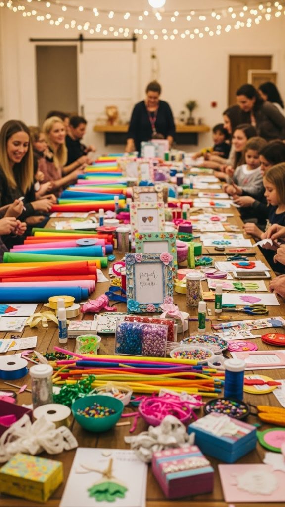 For creative brides, a DIY craft bridal shower is an interactive and engaging idea. Provide craft stations where guests can make personalized keepsakes such as jewelry, photo frames, or custom tote bags. Use decorative table settings with pastel tissue paper, flowers, and ribbons to match the festive vibe. This type of party allows everyone to get hands-on while creating gifts or mementos for the bride-to-be.