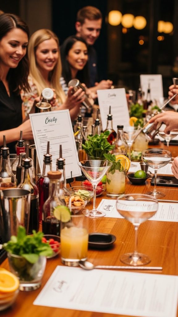 Host a cocktail-making bridal shower to add a fun and educational twist. Hire a professional mixologist or set up DIY cocktail stations with recipe cards and ingredients. Provide beautiful glassware, garnishes, and a variety of spirits. Guests can learn to make creative drinks while socializing. Pair the cocktails with appetizers and themed décor to complete the experience. This is a lively and interactive way to celebrate the bride.