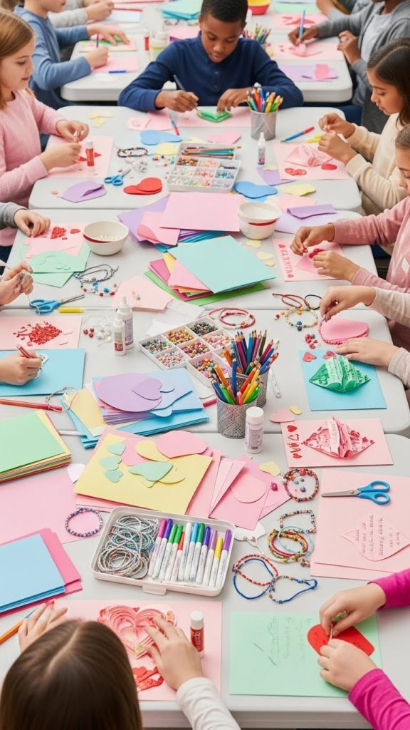 Set up multiple craft stations where youth can create Valentine-themed items such as cards, bookmarks, bracelets, or posters with positive messages. Crafting encourages creativity and provides a relaxed environment for conversation and connection. Finished items can be kept or donated as part of a kindness initiative.