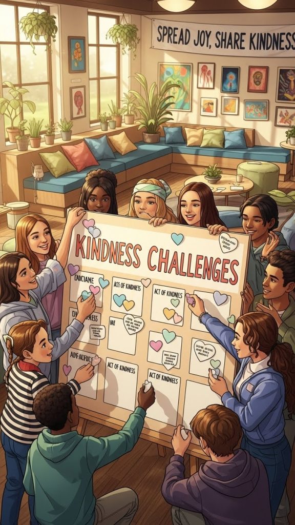 Organize a kindness challenge where youth complete acts of kindness throughout the event or week. Challenges may include complimenting someone new, helping with setup or cleanup, or writing positive messages. You can create a kindness board to track completed challenges and celebrate everyone’s efforts.
