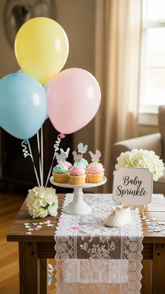A “baby sprinkle” is perfect for a third child. Instead of a large formal shower, this idea focuses on light refreshments, close friends, and minimal gifts such as diapers, wipes, or books. The atmosphere is cozy and stress-free, allowing parents to enjoy the moment without pressure. Decorations can be simple—soft balloons, greenery, and pastel accents—keeping the focus on celebration rather than excess.