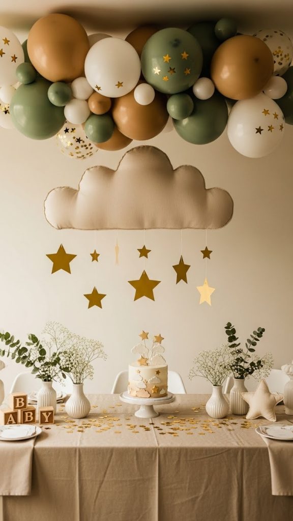 Many parents prefer gender-neutral baby showers for their third child. Neutral themes such as clouds, stars, animals, or nature create a calming and inclusive atmosphere. Colors like sage green, beige, soft yellow, or muted blues work well. This approach keeps the celebration timeless and allows decorations to be reused later if desired.