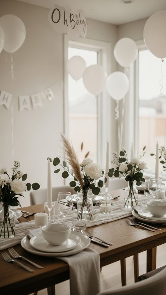 For experienced parents, simplicity often feels best. A minimalist home baby shower focuses on clean décor, soft colors, and intentional details. Think neutral table settings, small floral arrangements, and handmade elements. The emphasis is on conversation, comfort, and celebrating the baby without overwhelming planning or spending.