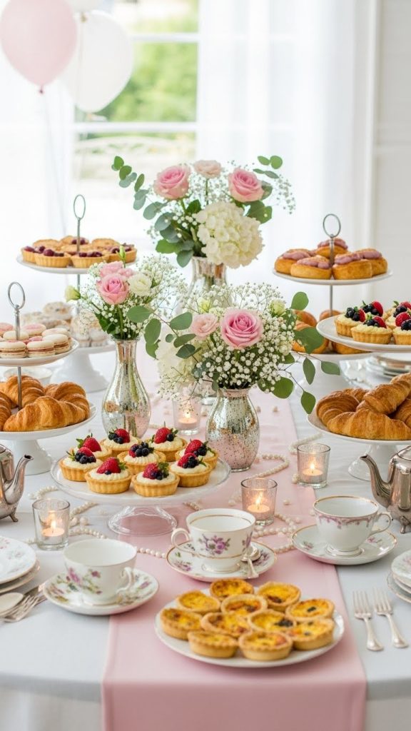 A brunch or tea-style baby shower is elegant yet easygoing. Light food options such as pastries, fruit, tea, and mocktails create a welcoming atmosphere. This idea works well for smaller groups and allows guests to enjoy quality time together. Soft décor, floral details, and cozy seating enhance the charm without feeling formal.