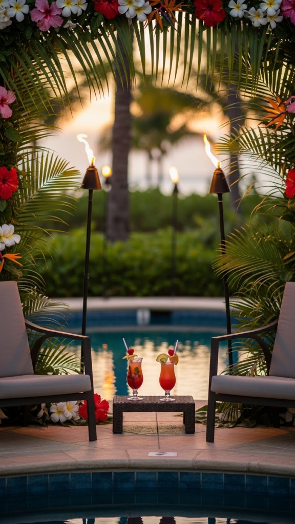 Why it works: Tropical themes are fun, relaxed, and photogenic, giving guests a mini getaway experience.