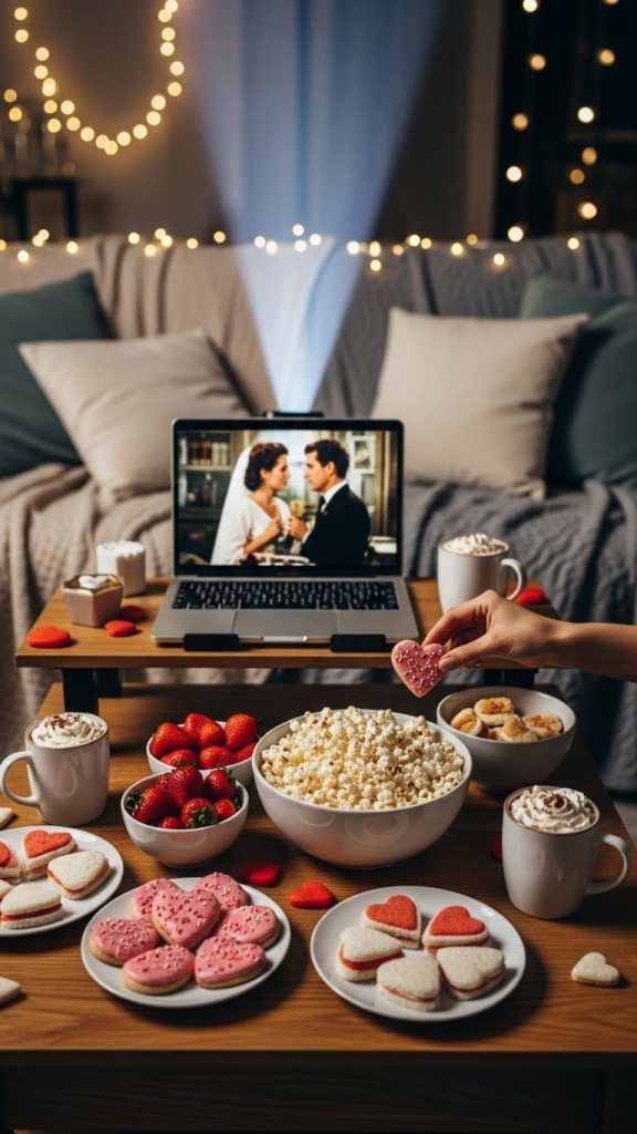 Transform a simple movie night into an unforgettable Valentine’s Day event. Curate a selection of romantic classics, romantic comedies, or your favorite love stories. To add a creative twist, theme your snacks and drinks to match the movies—for instance, heart-shaped cookies, chocolate-covered strawberries, or themed cocktails. Create a cozy atmosphere with blankets, cushions, and dim lighting. This activity is ideal for couples who enjoy relaxing together while indulging in shared entertainment.