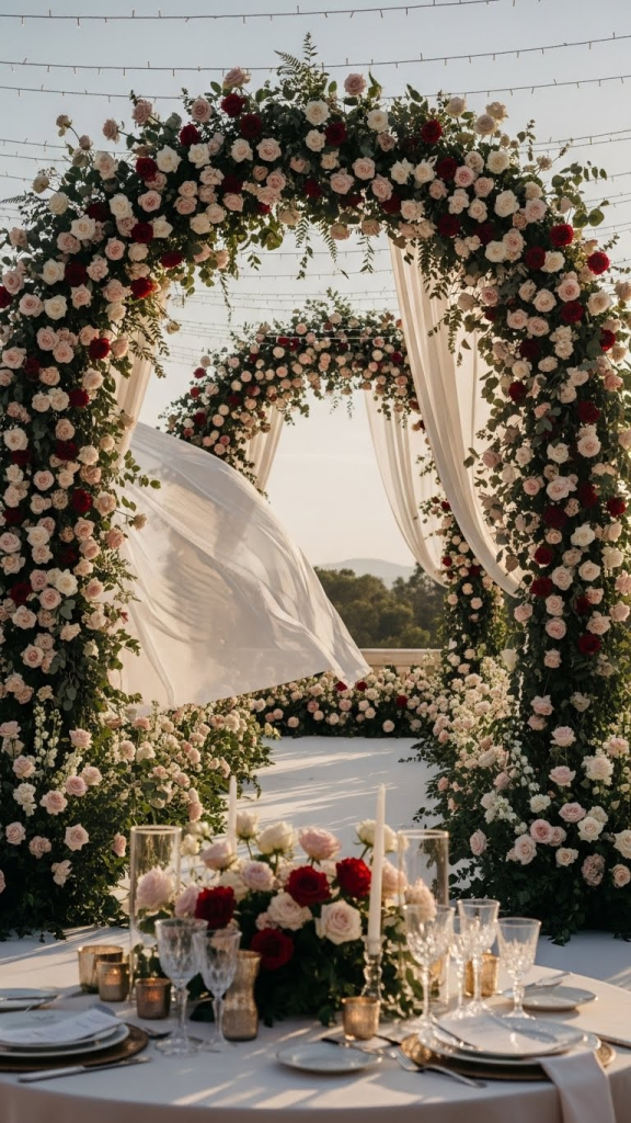 Flowers symbolize love, beauty, and freshness—making them ideal for anniversary décor. Choose flowers that hold meaning for you, such as roses, lilies, or orchids. You can decorate with floral centerpieces, garlands, or flower walls. For a luxurious touch, combine fresh flowers with greenery and soft fabrics like chiffon or silk drapes.
