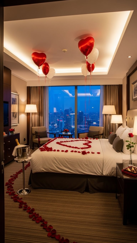 Start the celebration right at midnight. Decorate the bedroom with balloons, fairy lights, and flowers while he sleeps. Wake him with a cake, music, and a heartfelt wish. Midnight surprises feel magical and instantly set a romantic tone for the entire day.