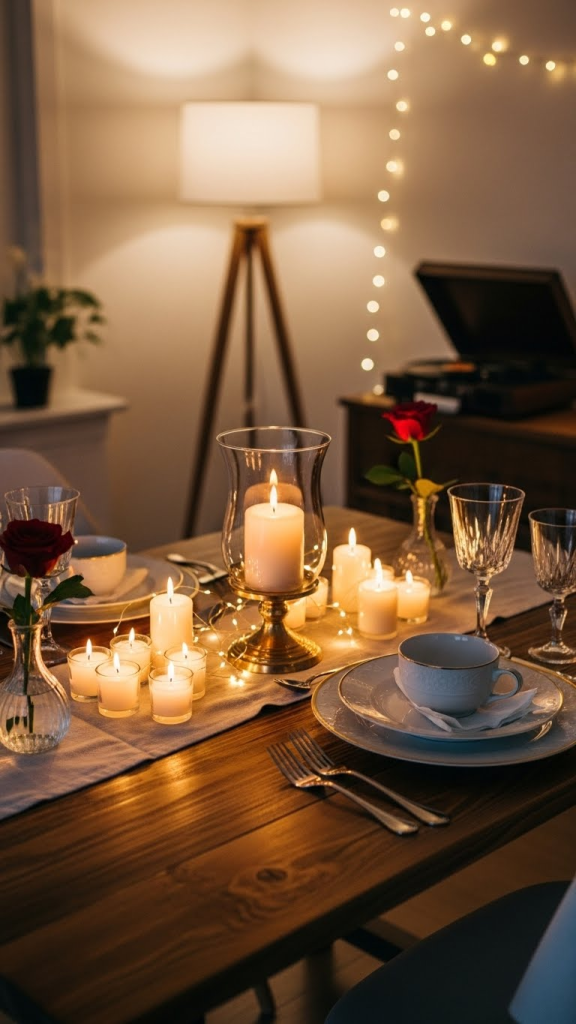 A candlelight dinner doesn’t need to happen in a restaurant. Cook his favorite meal or order from his favorite place and set up a beautifully decorated dining area at home. Use fairy lights, candles, soft music, and elegant tableware. You can dress up, create a printed menu, and even write a sweet welcome note. The intimacy of a home setup often feels more special than going out.