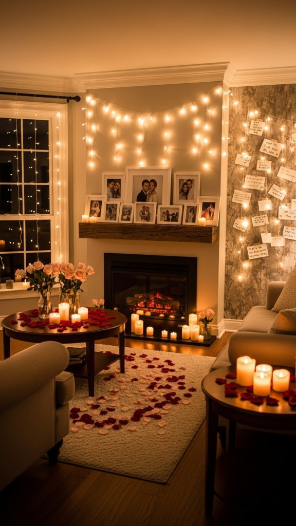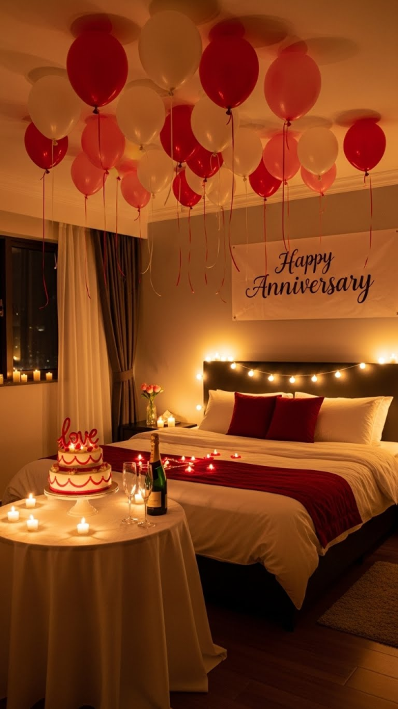 Transform your home into a walk down memory lane. Decorate one room with photos from your journey together—your first meeting, wedding day, vacations, and candid moments. Add handwritten notes explaining why each memory is special. You can end the evening with a slideshow or video montage set to your favorite songs. This surprise is deeply emotional and reminds him how much your shared journey means to you.