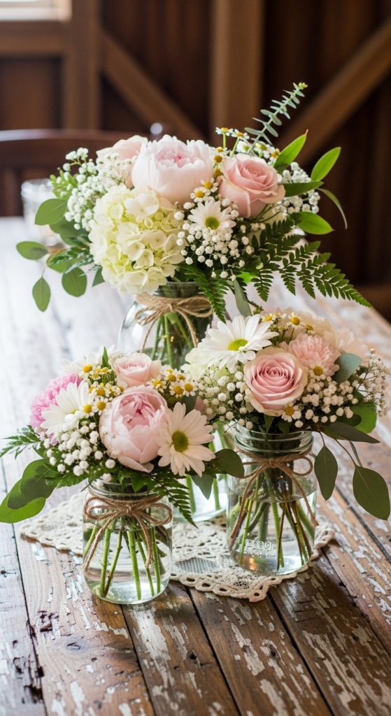 Fresh or faux flowers are a timeless choice for engagement parties. Create DIY centerpieces by arranging blooms in mason jars, vintage vases, or even geometric terrariums. Mixing colors that match your party theme adds cohesion to your decor. For an added touch, wrap the vases with ribbons, lace, or twine for a rustic or romantic vibe.