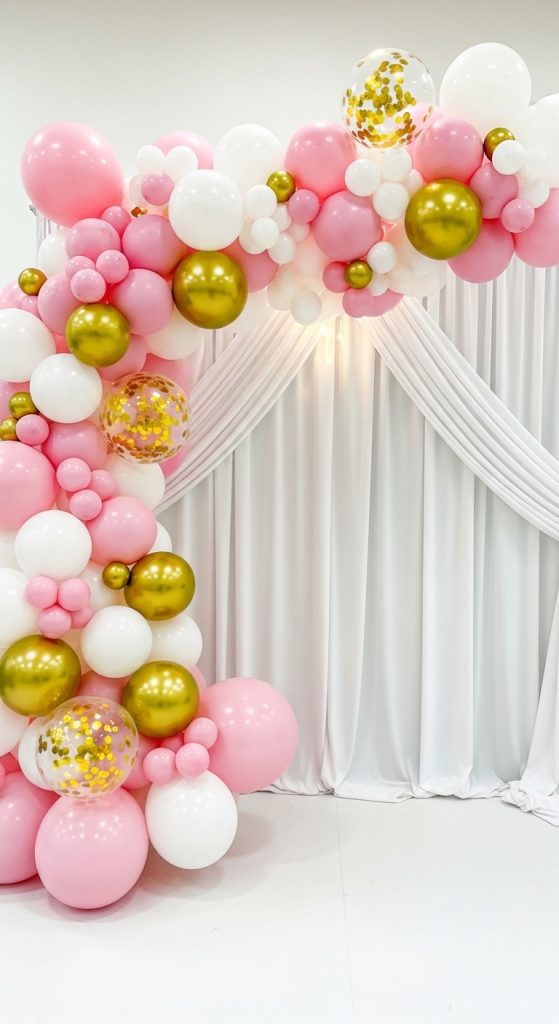 Balloons are a versatile and playful decoration option. Create balloon garlands or arches using a mix of sizes and colors that match your theme. For an extra creative touch, add metallic, confetti-filled, or personalized balloons with the couple’s initials or engagement date. Balloon installations can serve as a stunning backdrop for photos or as a centerpiece feature.