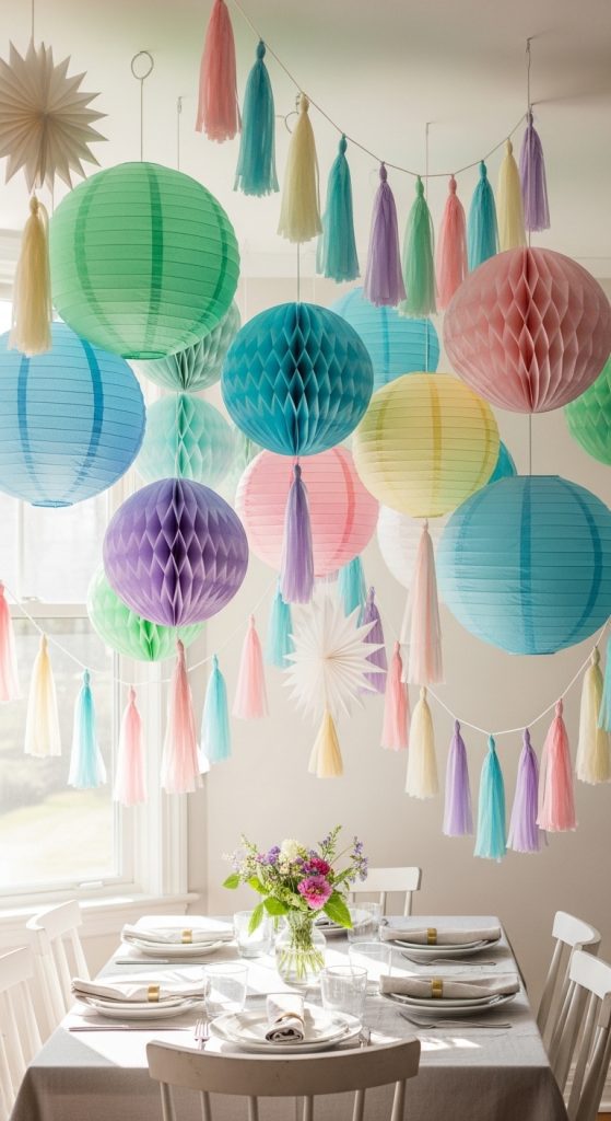 Suspended decorations can transform a plain room into a visually stunning space. Think paper lanterns, pom-poms, tassel garlands, or even hanging floral arrangements. These elements add depth and movement to your party decor, making your venue feel more dynamic and festive. Hanging decorations over dining areas, dessert tables, or the dance floor works exceptionally well.