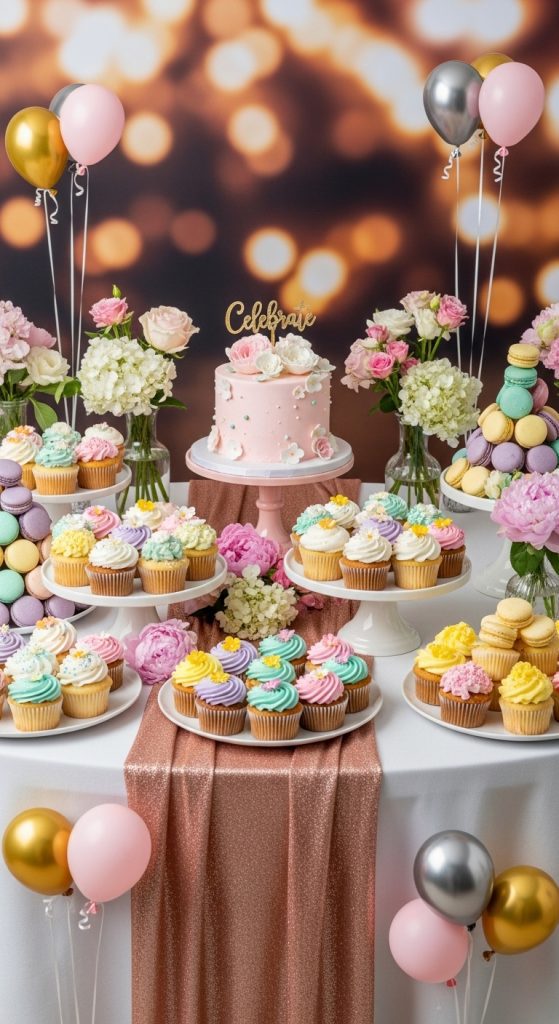A well-styled dessert table is not just delicious—it’s a centerpiece in itself. Use tiered trays, cake stands, and decorative plates to showcase treats. Add DIY elements like custom cupcake toppers, edible glitter, or themed signage. Incorporating flowers, candles, or mini balloon garlands around the table will make the dessert station both eye-catching and cohesive with your engagement theme.