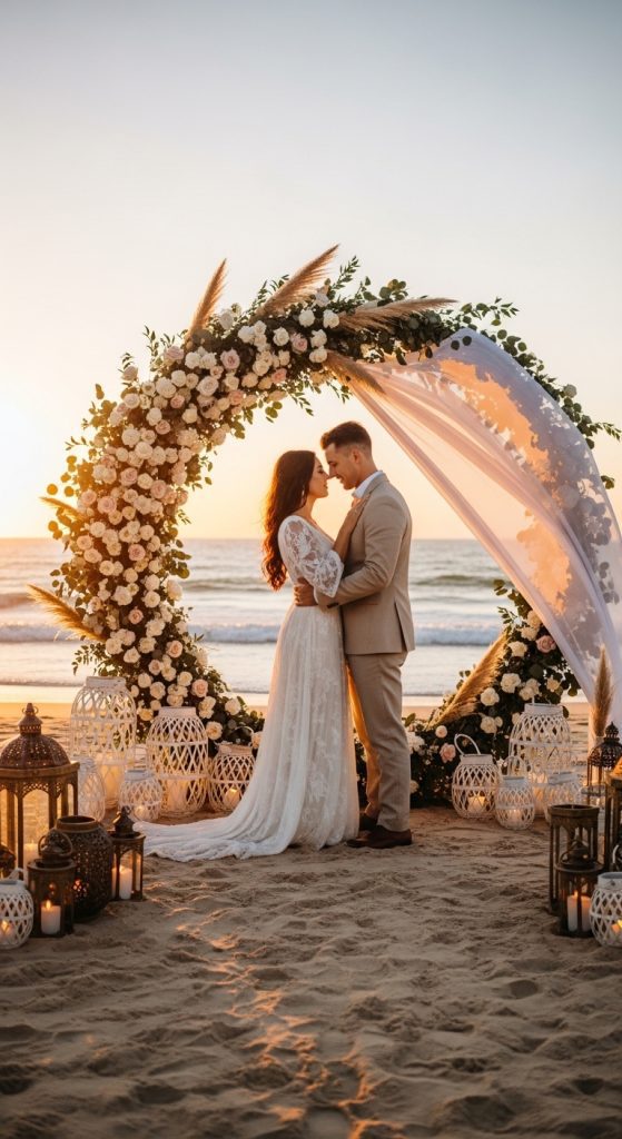 If you love the ocean, a beach engagement celebration is a beautiful choice. Set up a decorated area with flowing fabrics, lanterns, and floral arrangements. The sound of waves and the sunset create a naturally romantic setting. Guests can enjoy fresh drinks, snacks, and a relaxed environment. This idea works well for both intimate gatherings and larger celebrations.