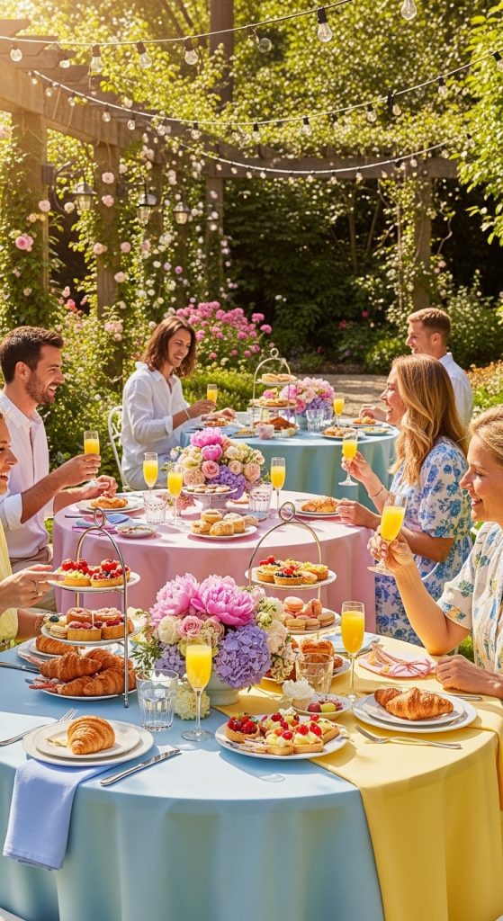 For daytime celebrations, a garden brunch is a fresh and cheerful option. Think floral centerpieces, pastel table settings, and plenty of sunlight. Serve a mix of brunch classics—mimosas, quiches, fresh pastries, and fruit platters. Outdoor garden parties are ideal for intimate gatherings, and they give you the chance to incorporate fun games, flower crown stations, or even a photo booth surrounded by blooms. String lights and lanterns can keep the atmosphere magical as the day transitions into evening.