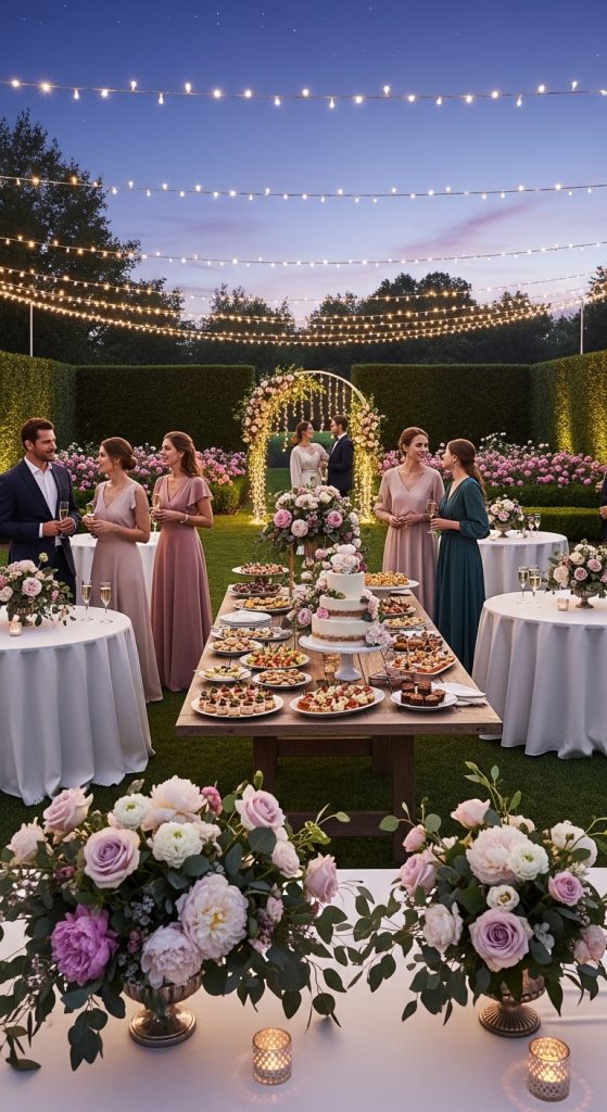Entertainment is key to creating a lively and enjoyable atmosphere. Depending on the couple’s preferences, this could range from a live band, a DJ, or a playlist curated with the couple’s favorite songs. For smaller or more intimate gatherings, a string quartet or acoustic musician can provide a sophisticated touch. Consider incorporating a dance floor or lounge area where guests can relax and mingle while enjoying the music.