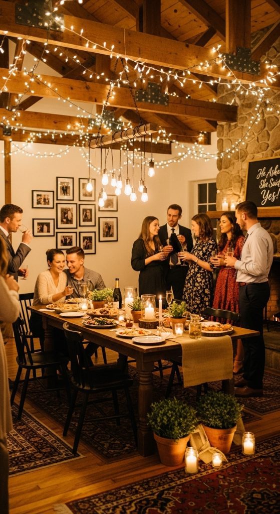 A signature cocktail named after the couple adds a personalized touch to the party. You can also set up a beverage station with a variety of options, including mocktails, wine, champagne, and craft beers. For themed parties, align the drinks with the theme. For example, a tropical party could feature piña coladas and mojitos, while a cozy winter engagement party could offer hot chocolate and spiced cider.