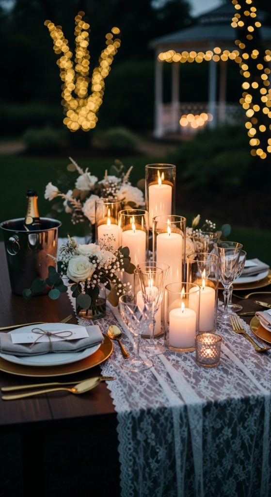 Candles create a warm and intimate atmosphere that is perfect for engagement celebrations. Use a mix of pillar candles, votives, and taper candles at different heights to create depth and visual interest.