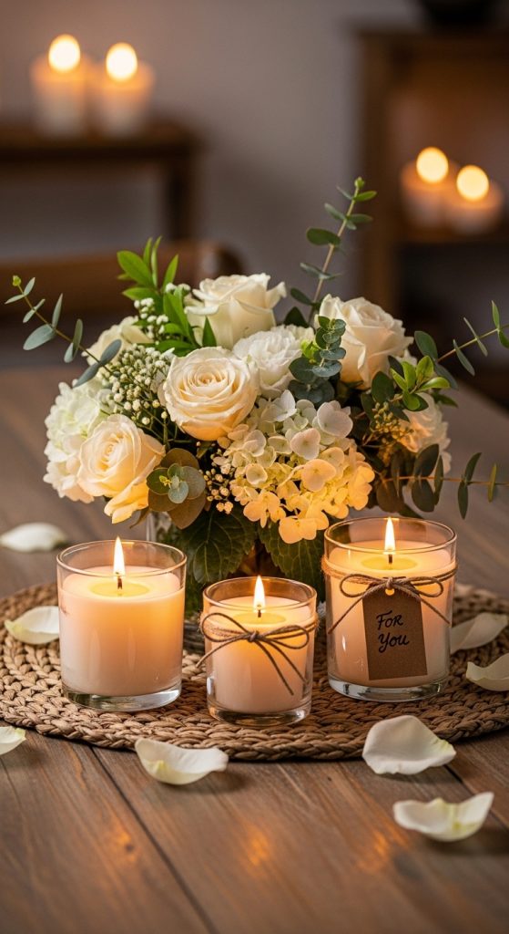 Scented candles in calming fragrances like vanilla, lavender, or sandalwood are especially popular. Some candle sets also come in elegant jars or decorative holders that double as home décor.