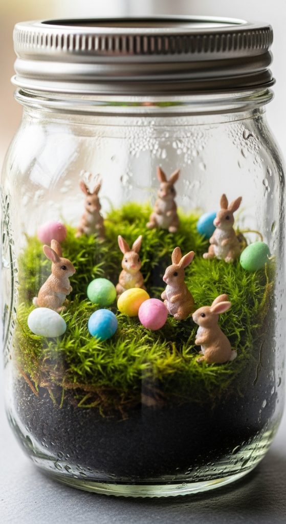 Bring the outdoors inside by creating mini Easter egg terrariums. Fill mason jars with moss, small pebbles, and miniature Easter eggs. You can even add tiny figurines like chicks or bunnies for a whimsical touch. These terrariums not only look adorable but also double as a fun craft activity for kids. Display them around your home to infuse spring vibes into every corner.