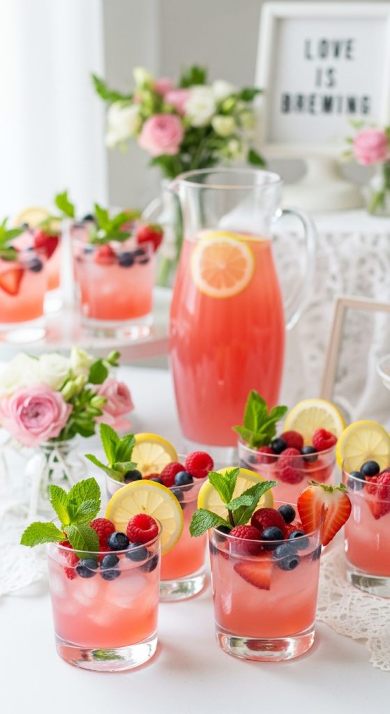 Refreshing drinks are essential for any bridal shower. Pink lemonade is a classic choice that looks festive and tastes refreshing. For a more personalized touch, create a signature mocktail inspired by the bride.