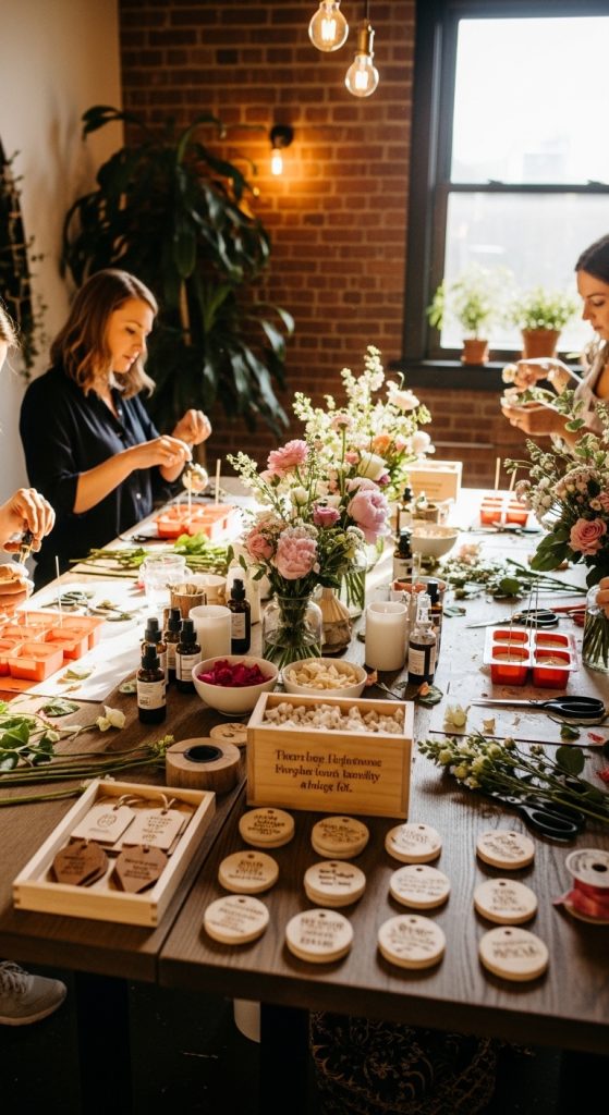 Give guests a creative outlet by incorporating an artisanal workshop into the bridal shower. Options include candle-making, calligraphy, or floral arrangement classes. Not only does this provide a fun and engaging activity, but each guest also leaves with a personalized keepsake. This approach reflects a thoughtful, experiential style, perfect for brides who appreciate creativity and handcrafted details.