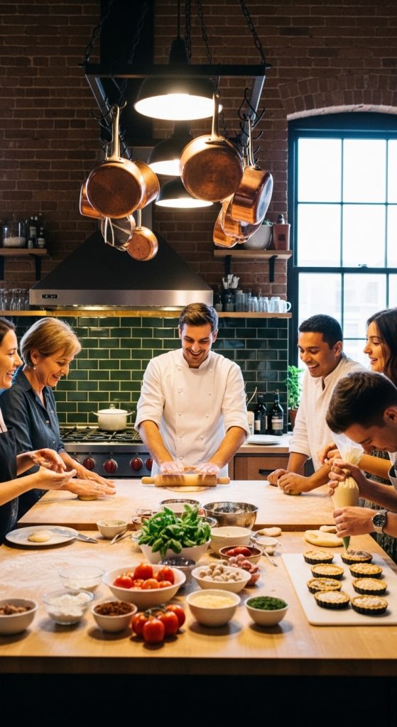 Food-focused brides will love a culinary adventure shower. Hire a chef to guide guests through a cooking class, perhaps making homemade pasta, sushi, or decadent desserts. Guests can learn new skills while enjoying a hands-on experience, culminating in a shared meal to savor together. This interactive approach ensures everyone participates, creating a lively and memorable celebration.