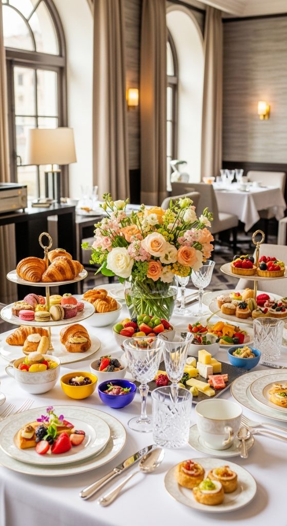 Nothing says sophistication quite like a brunch at a stylish boutique hotel. Think soft pastel table linens, fresh floral arrangements, and a mimosa bar with artisanal juices. Guests can enjoy delicacies such as smoked salmon canapés, quiches, and mini pastries while mingling in an intimate yet polished setting. Adding personalized touches like custom name cards or a monogrammed menu makes the event feel tailored to the bride, leaving everyone with a lasting impression.