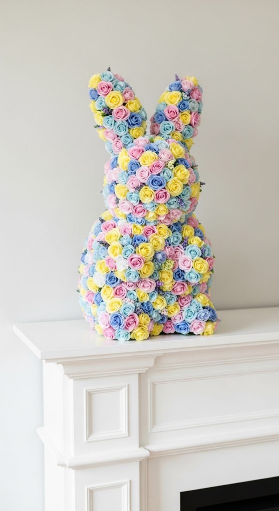 For a more sculptural approach, create a topiary bunny using floral foam shaped like a bunny and cover it entirely with silk flowers. Select colors that complement your home décor, such as whites and soft pastels for a minimalist style or bright pinks and purples for a playful look. These topiary bunnies make a stunning centerpiece for entryways or mantel displays.