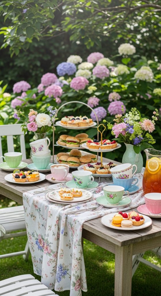 A garden tea party is one of the most charming and affordable bridal shower themes. Use your backyard or a local park as the venue to save money. Decorate with fresh or faux flowers, mismatched teacups, and pastel tablecloths. Serve simple finger sandwiches, biscuits, and tea in decorative pots.