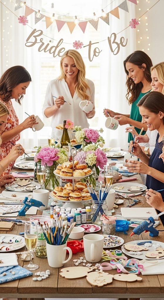 A DIY-themed bridal shower is not only budget-friendly but also interactive. Set up stations where guests can create something—like painting mugs, decorating tote bags, or making jewelry.