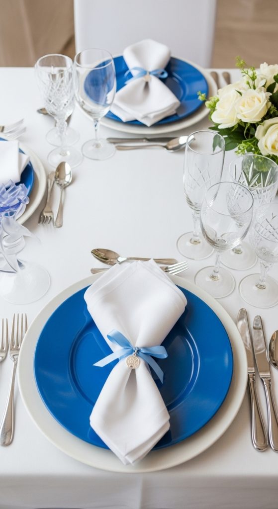 Add white and silver accents to keep it sophisticated. You can include blue-themed desserts like cupcakes with blue frosting or blueberry treats. It’s simple, classy, and easy to pull together on a budget.