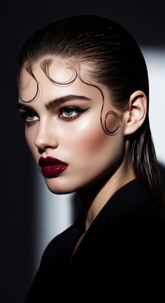For a bold and fashion-forward style, try the wet look slick back. This hairstyle is sleek, glossy, and perfect for modern events or red-carpet-inspired looks.