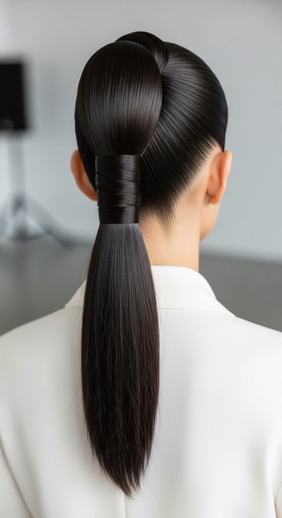 To elevate the look, wrap a small section of hair around the elastic and secure it neatly. Pair it with statement earrings for extra glam.