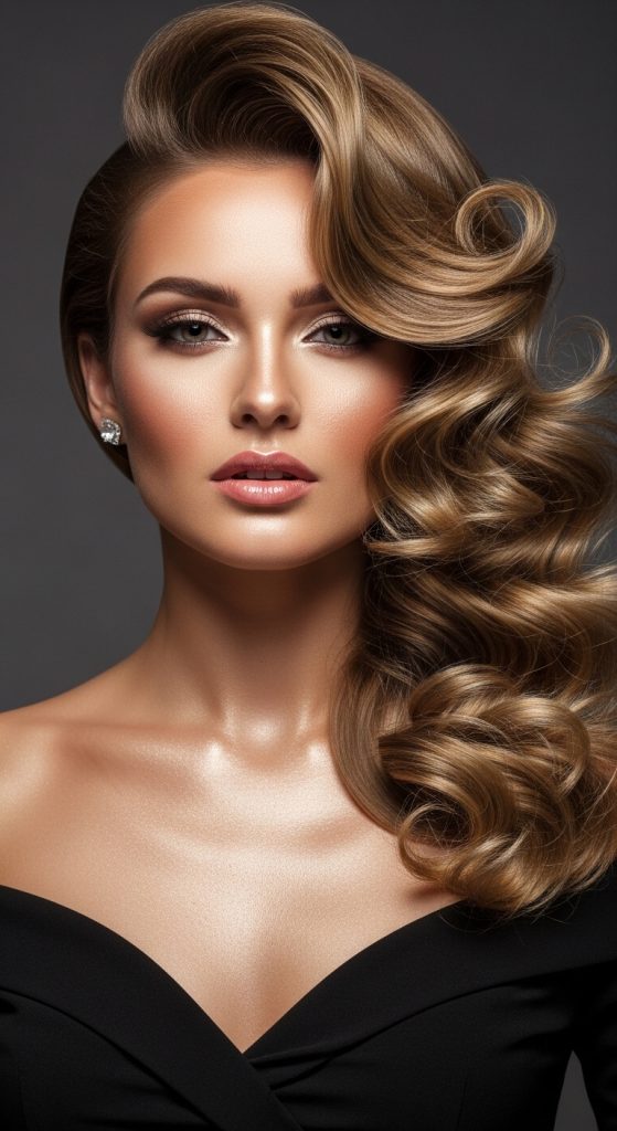 Side-swept hair adds drama and elegance to your overall look. By gathering your hair to one side, you create an asymmetrical style that highlights one shoulder while adding volume on the other side.