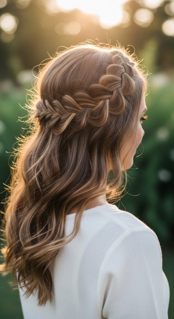 This hairstyle is perfect for outdoor events, garden parties, or weddings. It pairs beautifully with soft makeup and delicate jewelry.