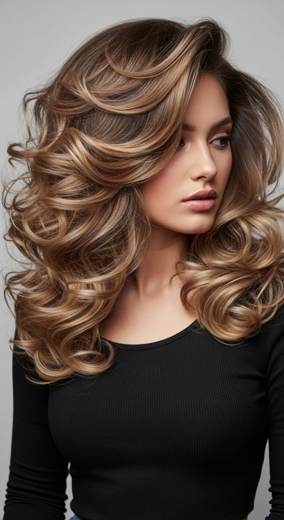 For a more dramatic take, curly mermaid waves combine loose waves with tighter curls, giving the hair a bouncy, voluminous effect. This style works especially well on thick hair, as the curls create dimension and richness. Start by curling sections of your hair with a medium or small barrel, then gently run your fingers through the curls to soften them into waves. Finish with a light hairspray to hold the style without making it stiff.
