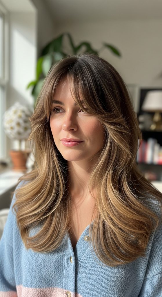 9. Layered Mermaid Waves with Bangs