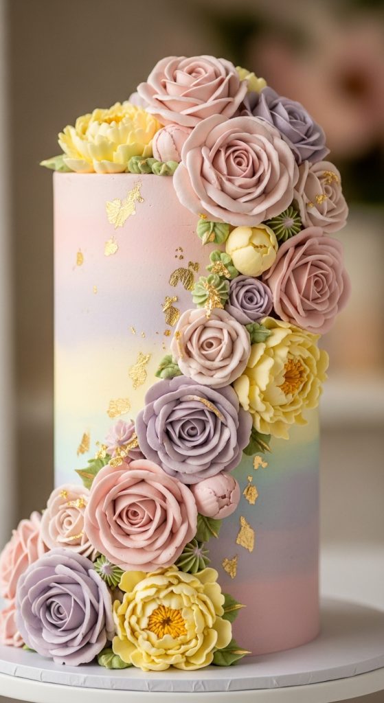 A floral buttercream cake is timeless and elegant. Using soft pastel shades like blush pink, lavender, and pale yellow, you can pipe intricate buttercream flowers such as roses, daisies, and peonies directly onto the cake. Adding edible gold leaf or a delicate ribbon around the base can give the cake an extra touch of sophistication. This cake is perfect for moms who love a classic and refined aesthetic.
