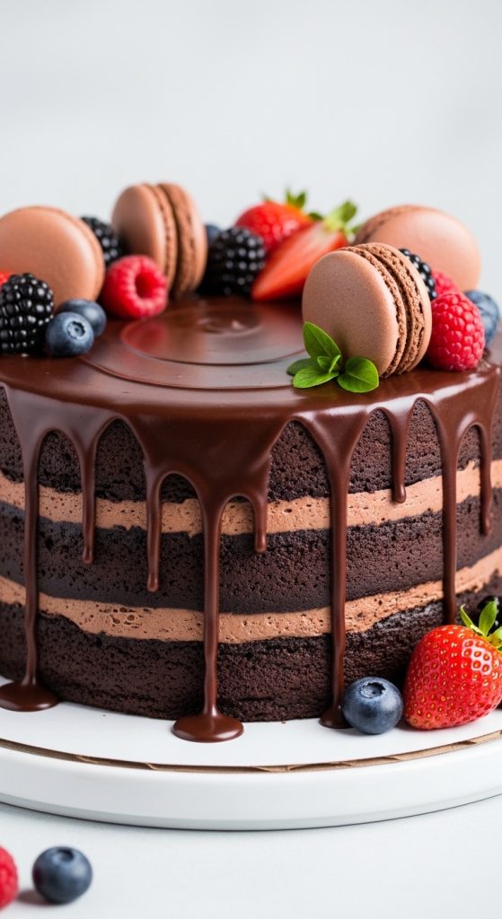 For chocolate-loving moms, a chocolate ganache drip cake is a showstopper. This cake can feature layers of rich chocolate sponge with creamy chocolate ganache filling. The glossy ganache drips elegantly down the sides, and you can top it with fresh berries, macarons, or edible flowers. This design is indulgent, making it ideal for a special treat that feels luxurious.