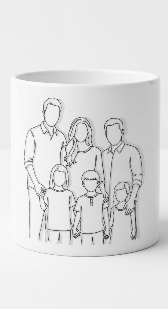 This type of mug features a custom illustration of your family. It can be drawn in cartoon style, minimalist line art, or watercolor portraits. You can include pets, home elements, or even a favorite family activity. It turns a simple mug into a piece of art that tells a story.