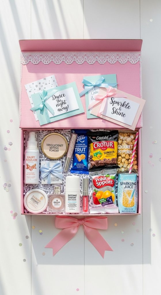 A prom survival kit is both fun and practical. You can pack essentials like lipstick, mints, safety pins, tissues, deodorant, hairpins, and small snacks in a decorated box or pouch. Adding a cute note or motivational message makes it even more special. This thoughtful gift ensures they are prepared for any prom night situation.