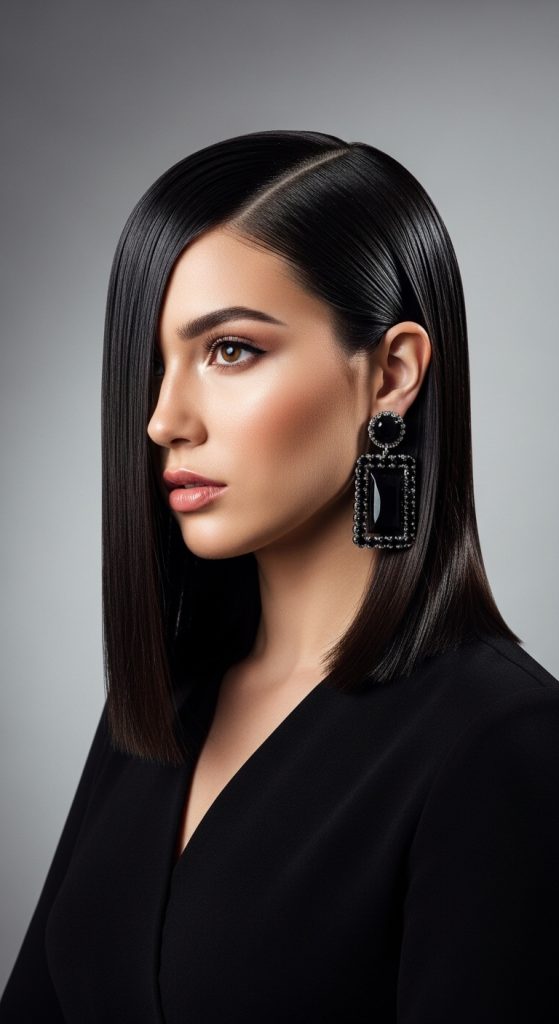 For a modern and minimalistic look, sleek straight hair is a stunning option. A sharp middle part adds symmetry and sophistication. Use a flat iron for a glass-like finish and apply anti-frizz serum for smoothness. This hairstyle works especially well with bold makeup and structured dresses.