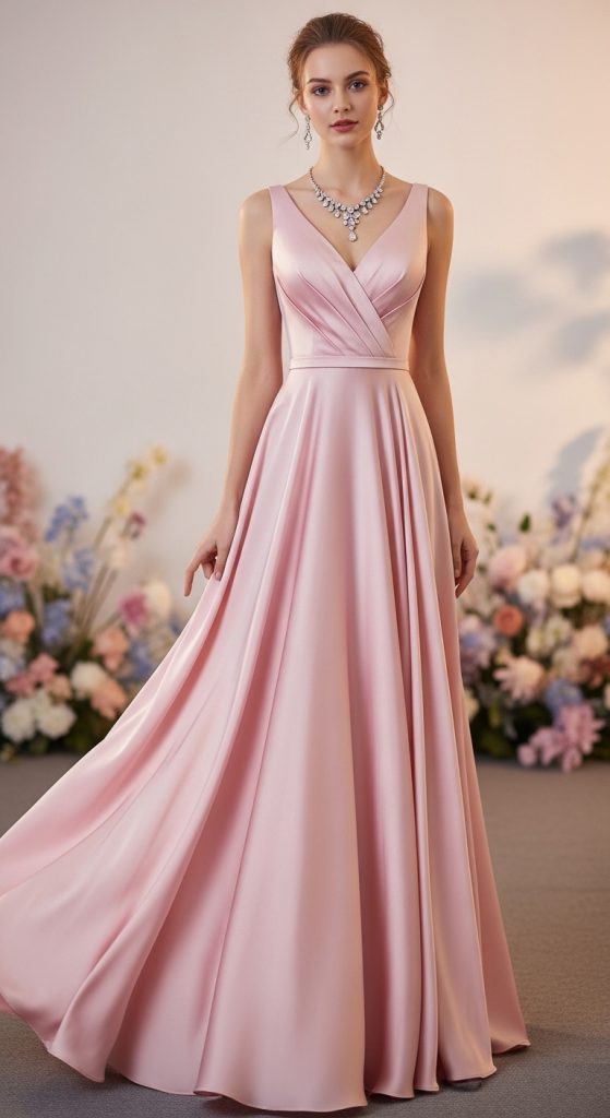 An A-line silk gown is universally flattering and perfect for those who want a graceful, princess-like appearance. The fitted bodice and flowing skirt create a balanced silhouette that enhances every body type. Soft pastel shades like blush pink or lavender work beautifully for a dreamy prom aesthetic.