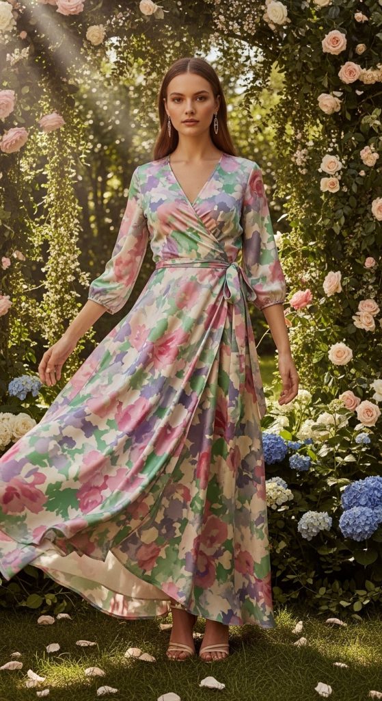 For a playful and trendy look, consider a silk dress with ruffle details. Whether it’s along the neckline, sleeves, or hem, ruffles add texture and movement. Light colors like sky blue or soft yellow can enhance the fun and youthful vibe of this style.