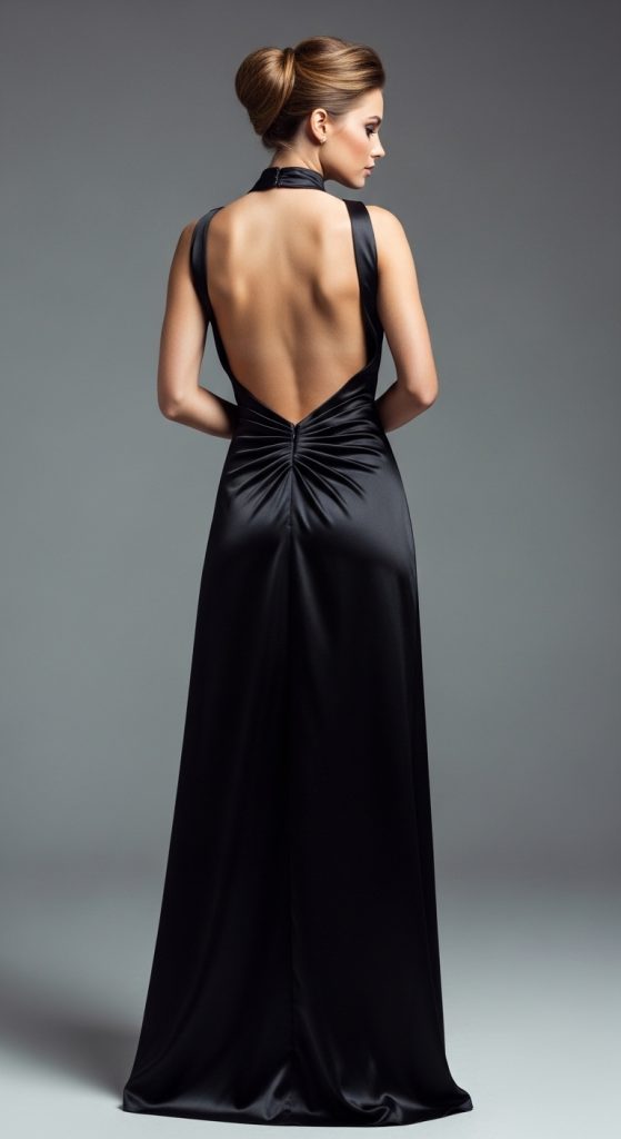 A backless silk dress is perfect for making a subtle yet striking statement. The simplicity of the front combined with an open back creates a stunning contrast. Keep the design minimal and let the silk fabric’s natural shine do the work.